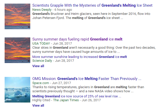 "...για πρώτη φορά από τότε που άρχισαν οι μετρήσεις, βροχή αντί για χιόνι έπεσε στο υψηλότερο σημείο της Γροιλανδίας, μια ανησυχητική εξέλιξη για τον μεγαλύτερο όγκο πάγου στο Βόρειο Ημισφαίριο καθώς το κλίμα αλλάζει [1, 2, 3, 4, 5]