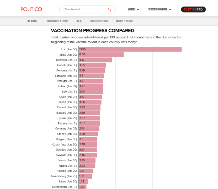 Ωστόσο, σύμφωνα με δεδομένα του politico (αρχείο), η Ελλάδα βρίσκεται στην 17η θέση ανάμεσα στις χώρες της Ε.Ε.