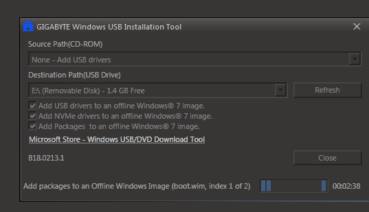 Αν λάβεις το παρακάτω μήνυμα, σημαίνει ότι έχεις συνδέσει το USB στικάκι σε υποδοχή USB3. Υπάρχουν αρκετοί τρόποι για να το διορθώσεις αυτό, ωστόσο ο καλύτερος (για εμένα) είναι να κατεβάσεις το πρόγραμμα "Windows USB Installation Tool" από την Gigabyte, το οποίο θα ενσωματώσει τους κατάλληλους drivers στο στικάκι σου.