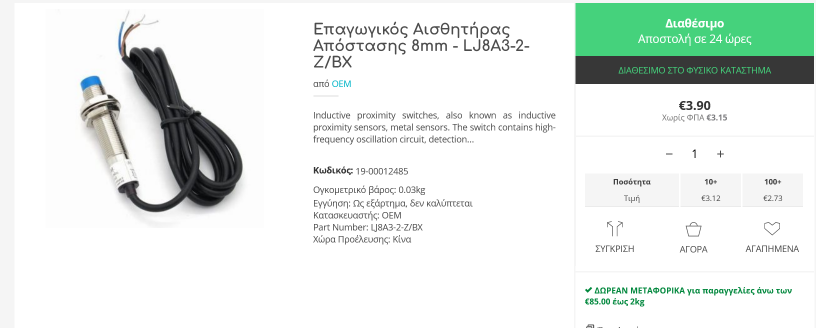 Αναλόγως τα επαγωγικά, αλλάζει και η απόσταση ανίχνευσης τους. Αυτό που είδατε, ήταν ένα κινέζικο με κόστος 1ε περίπου. Τα επαγωγικά έρχονται με 3 καλώδια, όπου τα δυο είναι για την τάση, σε αυτήν την περίπτωση για την μπαταρία και το 3ο είναι η έξοδος όπου μπορείτε να συνδέσετε οτιδήποτε όπως ένα απλό ρελέ ή τρανζίστορ ή ακόμη και ένα buzzer όπου θα σας ενημερώνει ηχητικά.